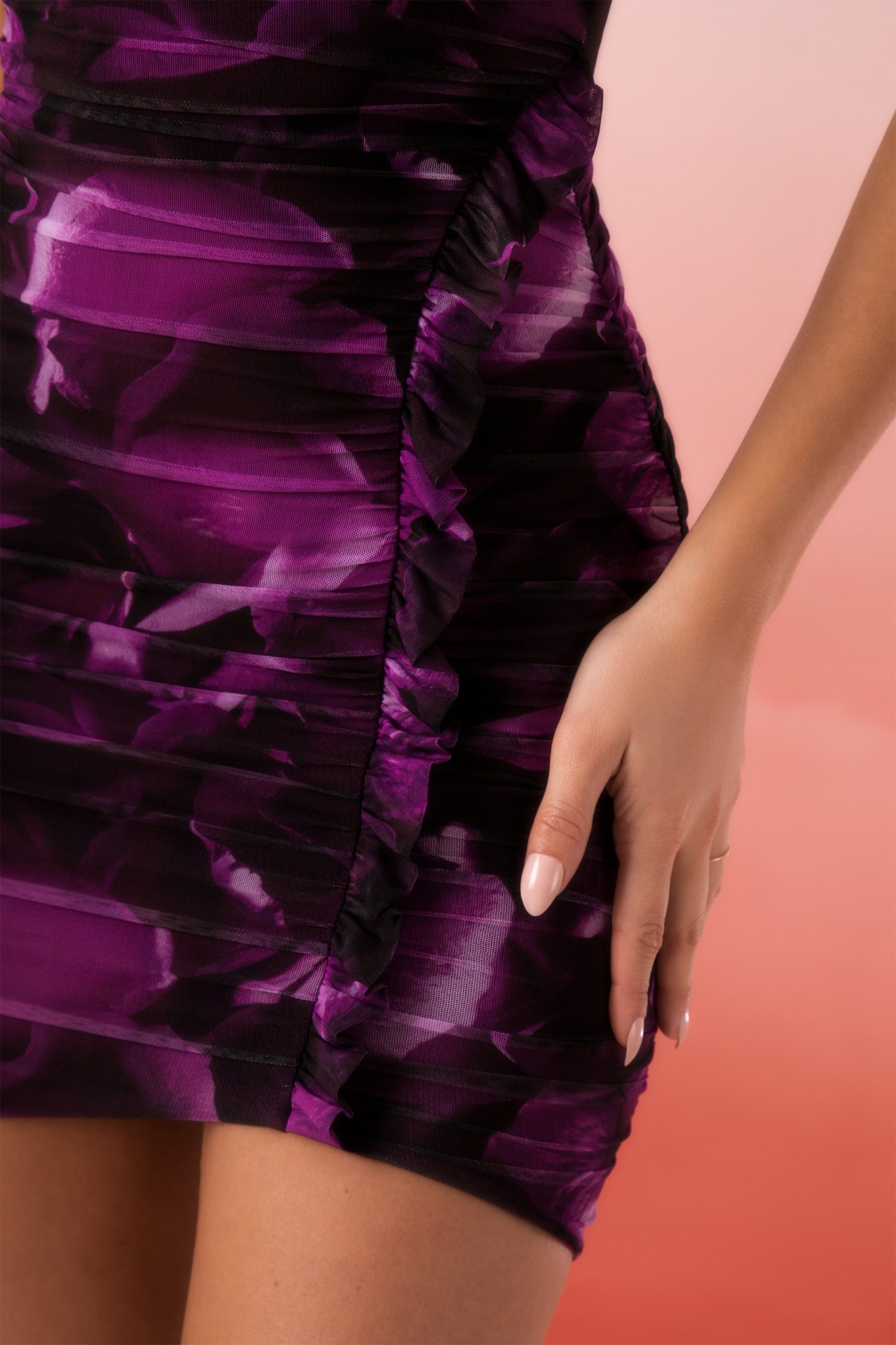 Elysian was made for date night, made in ruched jersey fabric with a scoop back and ultra thin spaghetti straps. Complemented with a draped neckline, the flirty side ruffle will really show off your curves.Pair yours with strappy heels and a mini bag.