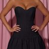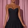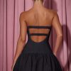 Cut-Out Bubble Hem Corset Mini Dress in Black