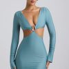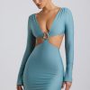 Cut-Out Hardware Detail Mini Dress in Sea Green