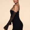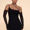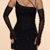 Fun and flirty, Soho was designed for girls who know how to command attention. Cut from our pearl and bead adorned fabric in two lustrous colourways, Soho features a bust flattering cowl neck with asymmetric, ultra thin straps that cascade across the neckline. With our signature built-in corsetry that works to cinch your waist, Soho is a bodycon design to the waist before the skirt falls to a thigh skimming a-line design. Complete with fully embellished, detached long sleeves that flare at the wrist, Soho has everything you need for your new season, party girl wardrobe.