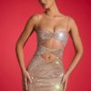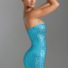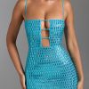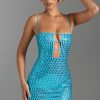 Embellished Cut-Out Mini Dress in Aqua Blue