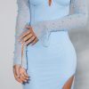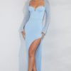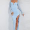 Loved everything about our St Germain mini dress? Meet San Marino, our latest silhouette inspired by our TikTok sensation mini dress but cut to a glamorous maxi length. Perfect for elevating your evening wear wardrobe, the San Marino maxi dress is a bodycon design cut from our lustrous stretch satin fabric that effortlessly hugs your curves. The underwired cups and built in corsetry create a cinched in silhouette whilst the dramatic maxi skirt features a daring thigh high split that exposes the left leg. Complete with our signature semi sheer, embellished sleeves with split flare detailing, San Marino is a must have party style.