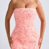 Inspired by the beauty of nature, the Azaelea dress is imagined in our London atelier and designed to turn heads. It’s crafted from premium satin with a delicate hand-applied tulle overlay comprising three-dimensional floral appliqués and cut to an A-line silhouette with a bandeau neckline. It’s fitted with an internal corset for enhanced shaping and silicone taping for a comfortable fit.
