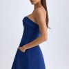 Foldover-Neck Structured Tulip Mini Dress in True Navy