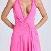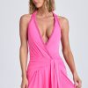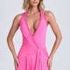 Halterneck Draped A-Line Mini Dress in Lollipop Pink