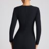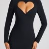 Designed in our woven crepe fabric, the sculpting Luciana mini dress is made with romantic evenings in mind. Its sexy bodycon silhouette is elevated by a flattering crew neckline, long fitted sleeves, and an eye-catching heart cut-out at the chest.