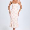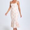 Inspired by the romance of sun-drenched days, the Petula midaxi dress is cut from premium stretch georgette to a stunning fishtail silhouette that enhances your shape. It’s elevated with contouring seams and a delicate picot lace trim at the hem, cementing the whimsical aesthetic. The clean square neckline is framed with tapered shoulder straps and adjustable straps at the back for your perfect fit.