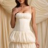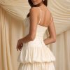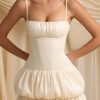 Elevated glamour with a festive twist. Crafted from lustrous non-stretch taffeta, the Clarice mini dress features a drop-waist bodice with a built-in corset for enhanced shaping and a stunning double-layered bubble skirt. In keeping with our love for elevated details, it’s complete with ruched gathering for a bust-flattering fit, a functional lace-up back, adjustable straps and coordinating jersey shorts for the perfect amount of coverage.