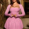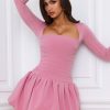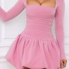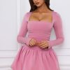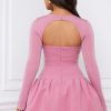 True romance. Create the perfect date night look with the Viola mini dress, crafted from lightweight stretch georgette and sheer jersey that highlights your curves, it features a concealed corset structure for enhanced shaping and support. Framed with long sleeves and a cut-out back, it falls to a mini length with a voluminous bubble hem.