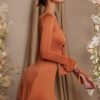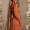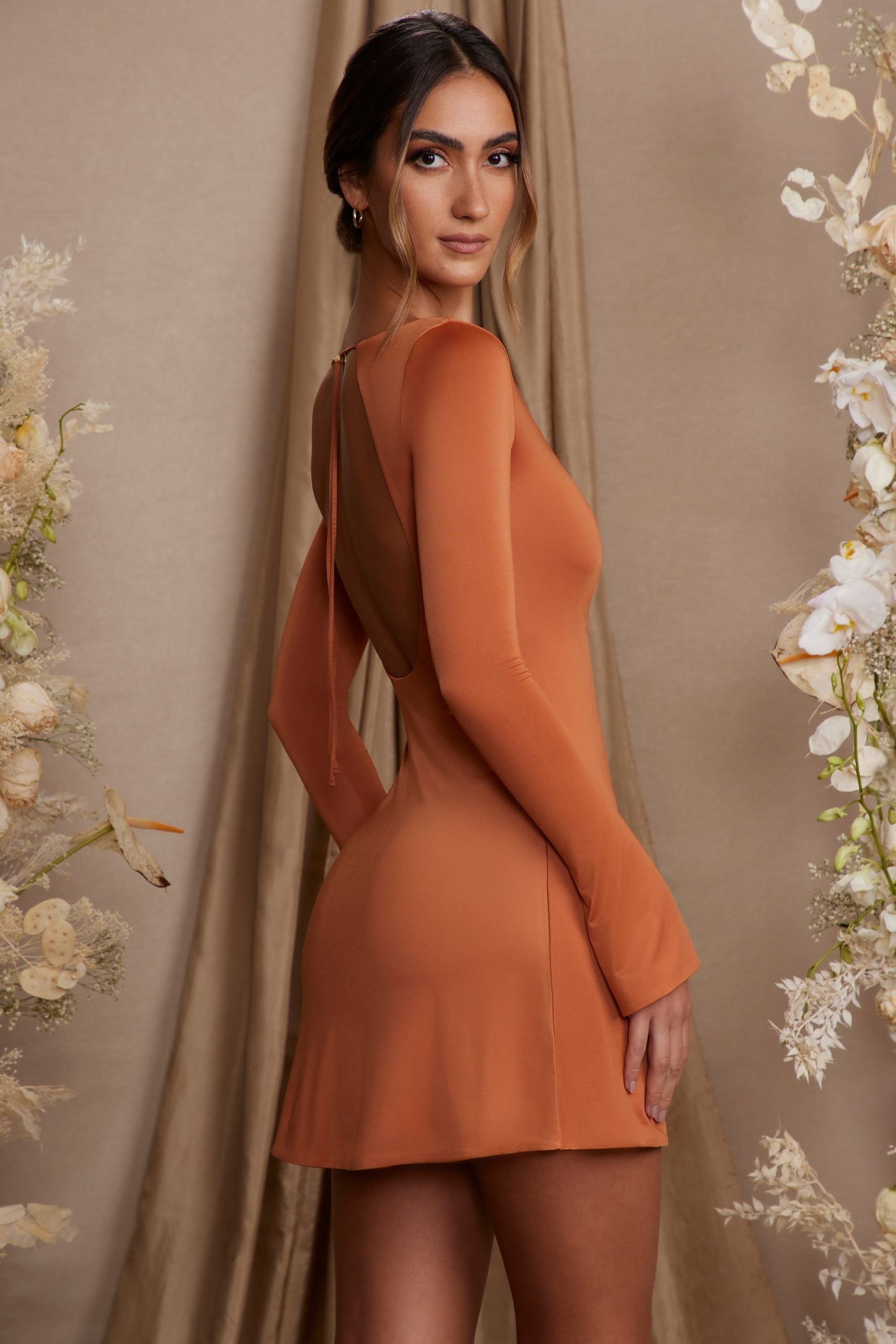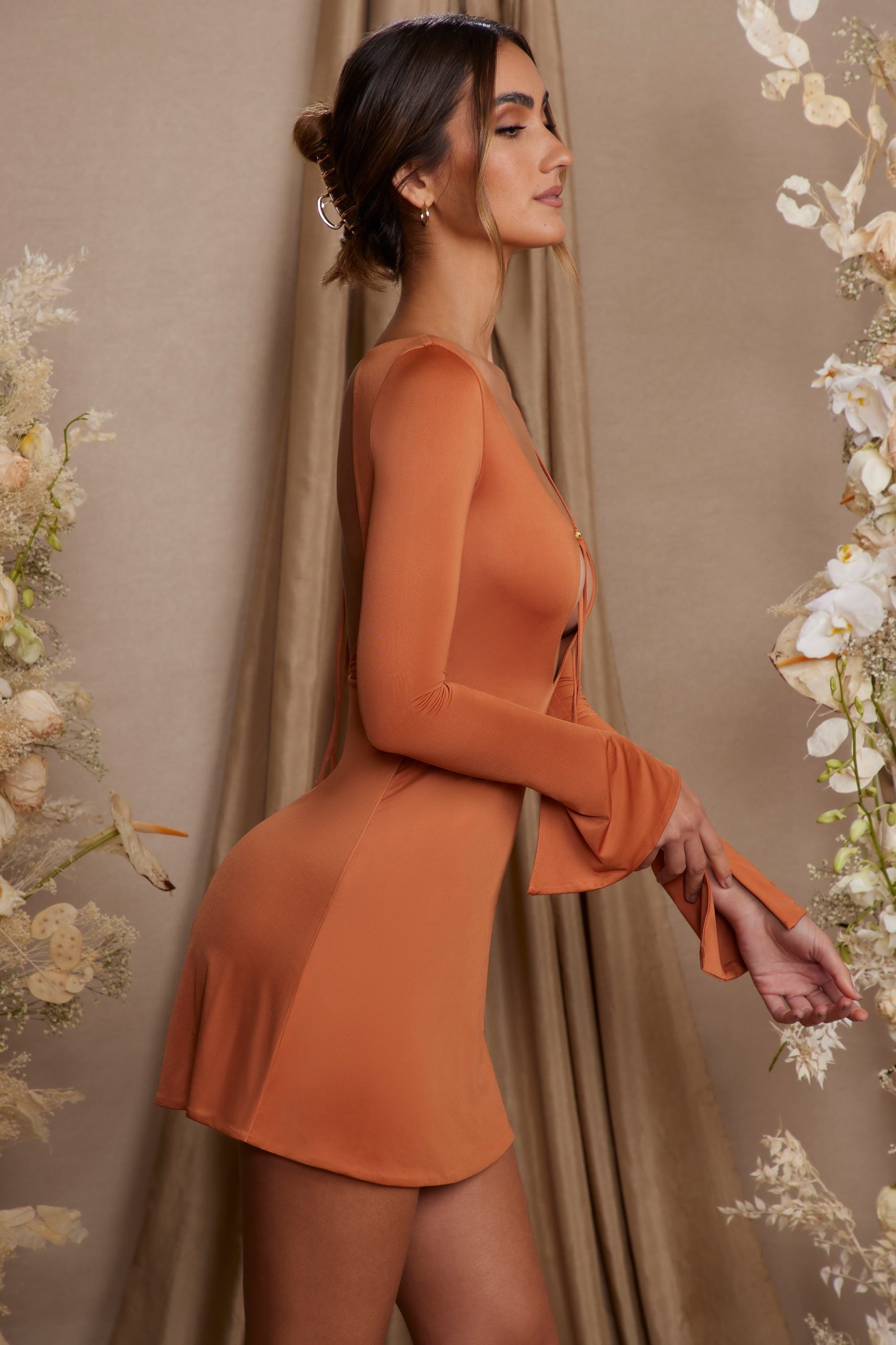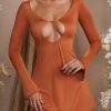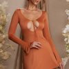 Long Sleeve Cut Out A-Line Mini Dress in Tan