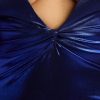 Long Sleeve Metallic Jersey Evening Gown in Electric Blue