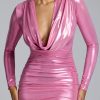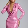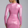 Long Sleeve Metallic Jersey Mini Dress in Rose Pink