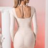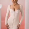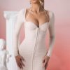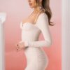 – Long sleeve mini dress with sweetheart neckline.