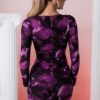 Long Sleeve Ruffle Detail Mini Dress in Multi Print