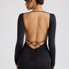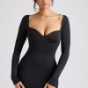 Sultry moments call for the seductive Demelza mini dress. Cut from our premium jersey – the slinky fabric hugs your curves for a supportive and flattering fit – Demelza showcases a sexy low back, close-cut sleeves, ruche detailing and statement heart-shaped metal hardware. Demelza is perfect for the season of love.