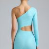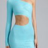 Metallic Cut-Out One-Shoulder Mini Dress in Ice Blue