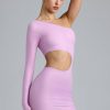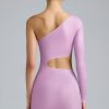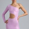 Metallic Cut-Out One-Shoulder Mini Dress in Violet Pink