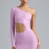 Metallic Cut-Out One-Shoulder Mini Dress in Violet Pink