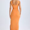 Modal High-Split Plunge-Neck Maxi Dress in Sunset Orange