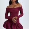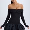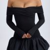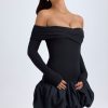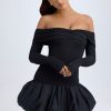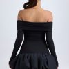 Modal Off-Shoulder Bubble Hem Mini Dress in Black