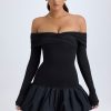 Modal Off-Shoulder Bubble Hem Mini Dress in Black