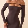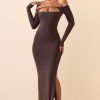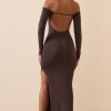 Modal Off-Shoulder Open-Back Maxi Dress in Chocolate Brown