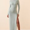 Modal Open-Back Long-Sleeve Maxi Dress in Smoke Green