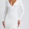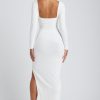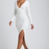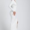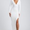 Modal Plunge Neck Long Sleeve Maxi Dress in White