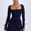 Buttery soft staples. An enduring silhouette you’ll reach for time and time again, the Elysia midaxi dress is crafted from jersey made with TENCEL™ Modal fibres that are naturally soft and smooth to the touch. It’s cut to a fitted silhouette with a square neckline and statement thigh-high split to one side. The flared sleeves are tempered with delicate adjustable ties.
