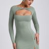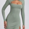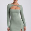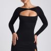 Minimalist silhouettes, statement detailing. The Sarla dress echoes our focus on elevated staples, thanks to its bold twist-front keyhole cut-out and statement open back. It’s crafted from a dual-layered jersey fabric with low-impact TENCEL™ Modal fibres, sourced sustainably from Beechwood trees and features figure-contouring underbust seams.