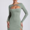 Minimalist silhouettes, statement detailing. The Sarla dress echoes our focus on elevated staples, thanks to its bold twist-front keyhole cut-out and statement open back. It’s crafted from a dual-layered jersey fabric with low-impact TENCEL™ Modal fibres, sourced sustainably from Beechwood trees and features figure-contouring underbust seams.