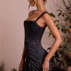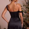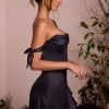 Romantic and enchanting, the Lilou mini dress is a captivating style designed in our premium satin fabrication. Cut to a mini length with a floaty a-line skirt with waterfall detailing, the Lilou mini dress features our signature built in corset with an angled hemline that works to create an alluring silhouette. The pretty pleated neckline accentuates your bust and we love the delicate shoulder straps with one resting off the shoulder for a seductive and whimsical look.