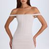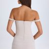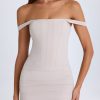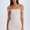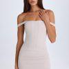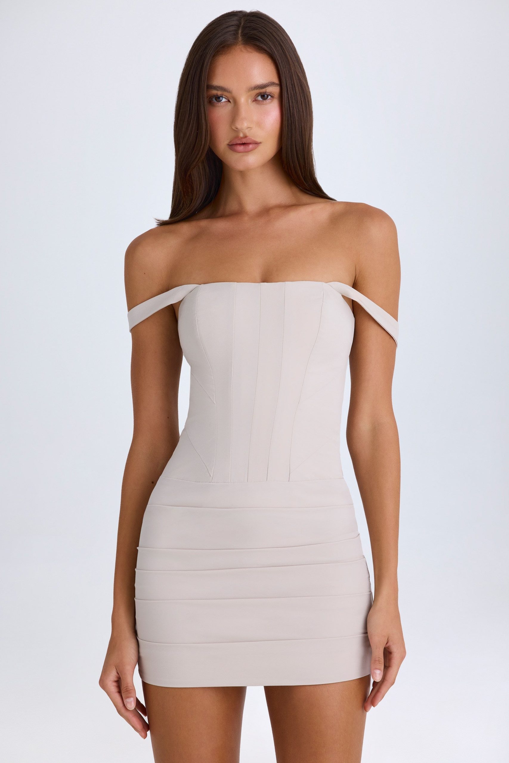Designed for day-to-night dressing, the Cheyenne mini dress is crafted from premium, lightweight tech nylon taffeta with a touch of stretch to a figure-skimming silhouette framed with off-shoulder straps. The corset-style bodice is enhanced with shaping seams and the bodycon skirt is uplifted with immaculately placed draping for a universally flattering fit.