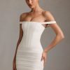 Designed for day-to-night dressing, the Cheyenne mini dress is crafted from premium, lightweight tech nylon taffeta with a touch of stretch to a figure-skimming silhouette framed with off-shoulder straps. The corset-style bodice is enhanced with shaping seams and the bodycon skirt is uplifted with immaculately placed draping for a universally flattering fit.