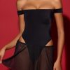 All in the details. An ethereal design ready to be accessorised, the Marion mini dress features a sculpting, seamless bodysuit with cheeky back coverage crafted from premium high-shine jersey. It’s overlaid with a semi-sheer 20D mesh mini skirt and framed with off-shoulder cap sleeves.