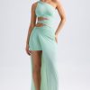Ideal for sunlit evening plans. The Sarjena dress is cut from our premium sheer jersey fabric to a stunning one-shoulder column silhouette enhanced with twisted cut-out detailing and perfectly placed ruching. It features a mini skirt overlaid with a lightweight maxi overlay.