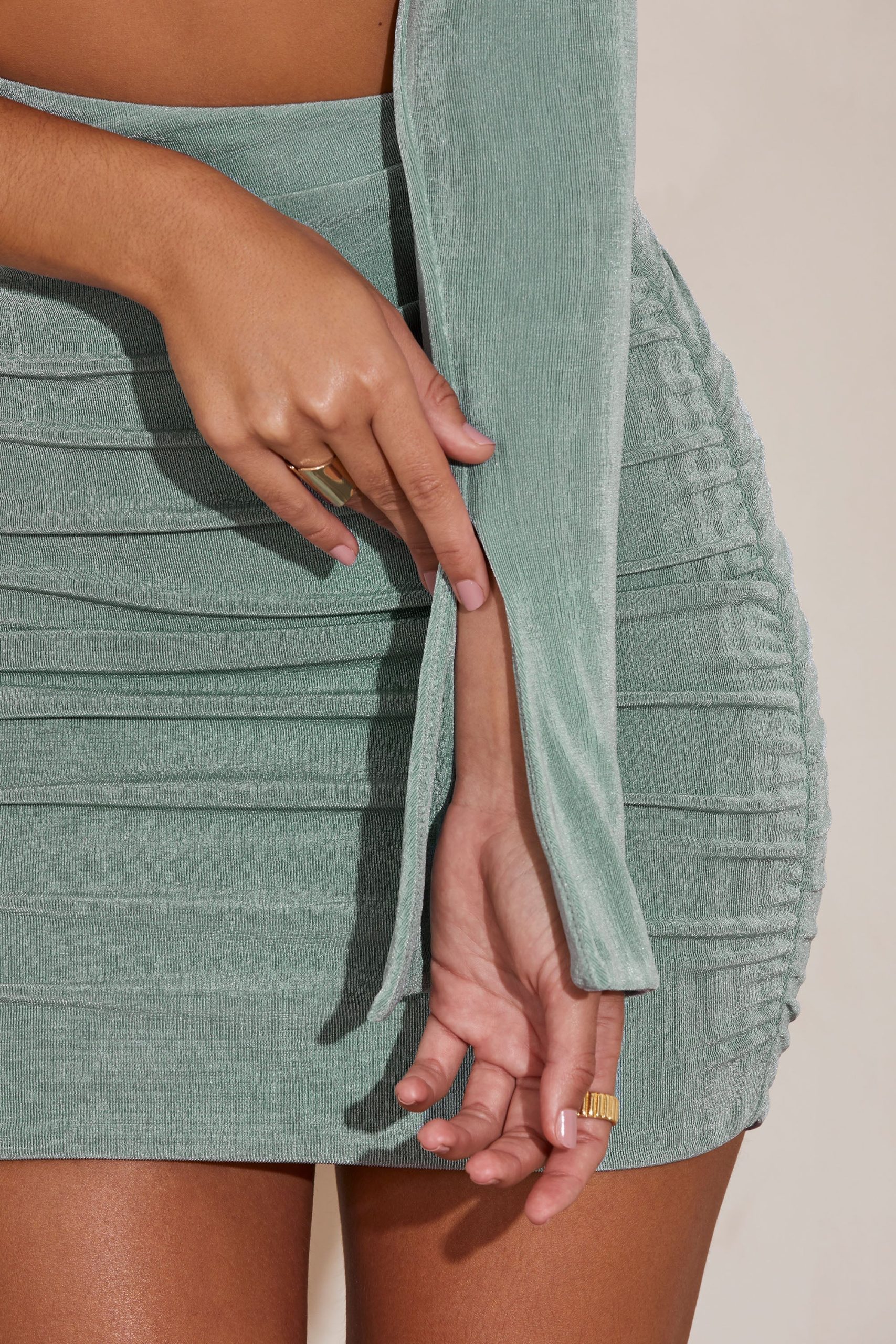 One Shoulder Flare Sleeve Mini Dress in Blue