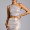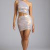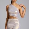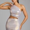 Sleek, shiny and made for the spotlight, the Maye mini dress is a captivating party-season style. Cut from our metallic jersey fabric with all-over ruching and 20D mesh lining, Maye accentuates your shape and offers a stretchy yet firm hold. Its flattering one-shoulder neckline, sexy side cutout and mini length will ensure you stand out at special occasions.