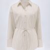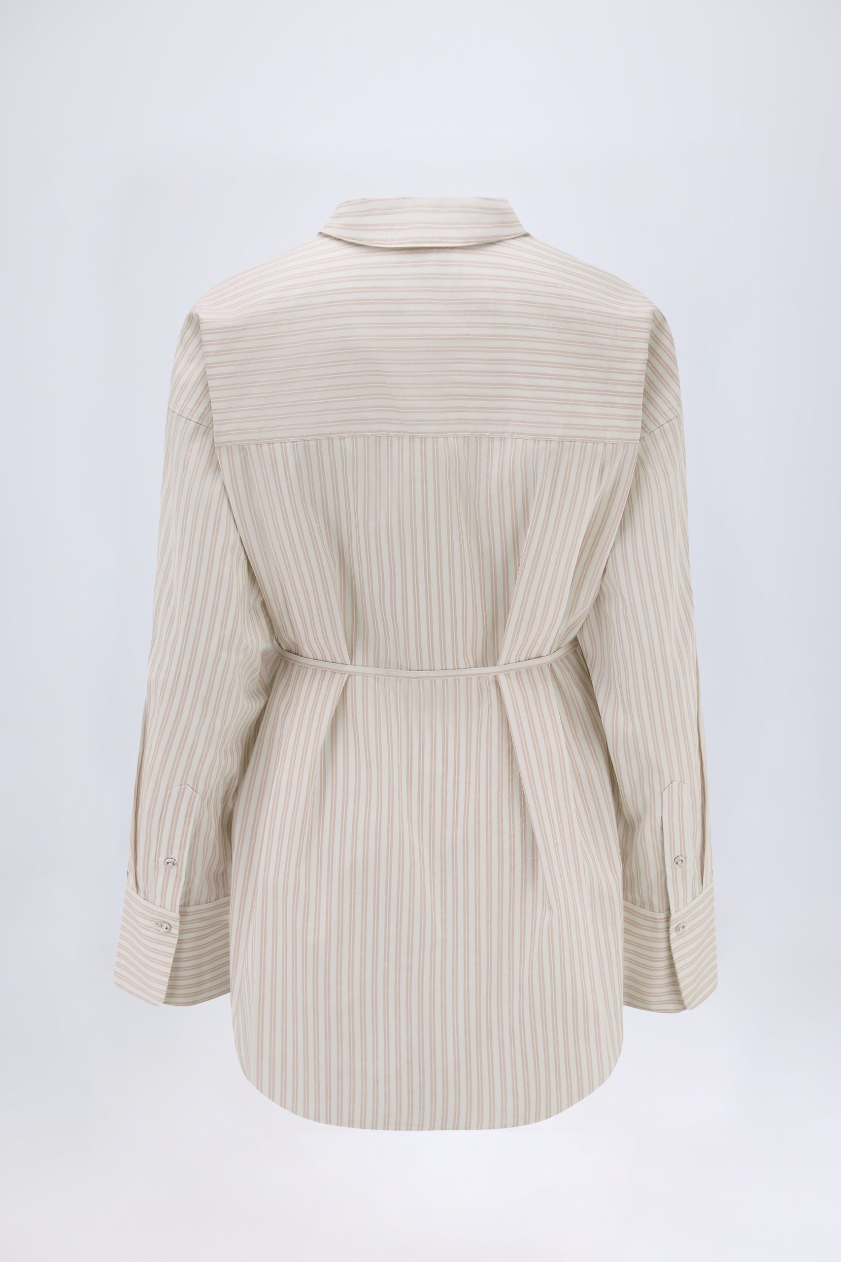 Oversized Cotton-Poplin Shirt in Taupe Stripe