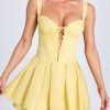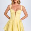 Meet Analise: the perfect day-to-night dress with a signature romantic twist. Crafted from lightweight stretch-cotton poplin to a breezy A-line silhouette, it features a fitted bodice elevated with moulded underwired cups for enhanced support, delicate pintucked detailing and picot lace trims. It falls to a voluminous, double-layered mini-length skirt and is complete with adjustable rouleau tie straps for your perfect fit.