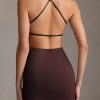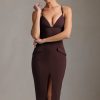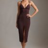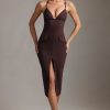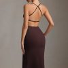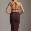Plunge-Neck Backless Midaxi Dress in Chocolate Brown
