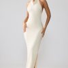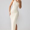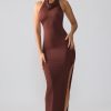 Effortless seduction. A timeless design cut from premium, dual layered jersey fabric, the Anise maxi dress features a classic high halter neckline with cowl neck detailing. Tight cut to the body to accentuate your curves, this premium design is complete with a seductive side split and sultry open back.
