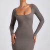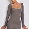 Ribbed Modal Long Sleeve Mini Dress in Grey