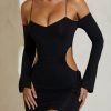An undeniable stand out piece, the Rumi mini dress features off the shoulder extra long sleeves with a split flare cuff and delicate spaghetti shoulder straps. Designed in our luxuriously smooth modal fabric with side cutouts that create the illusion of a cinched waist and functional drawstrings that allows you to choose your preferred level of ruching, the Rumi mini dress is perfect for creating an enviable silhouette. Pair this alluring bodycon mini dress with high heels and sleek hair for an evening look that makes an impact.