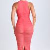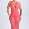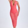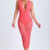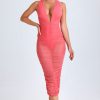 Meet your new favourite holiday dress. Designed with endless balmy evenings in mind, the Safira midaxi dress is crafted from signature 20D stretch mesh to a figure-hugging bodycon silhouette and underlaid with a built-in soft-touch slinky jersey bodysuit for enhanced coverage and support. It’s framed with a plunging V-neckline and elevated with perfectly placed ruching that defines and shapes your curves.
