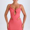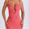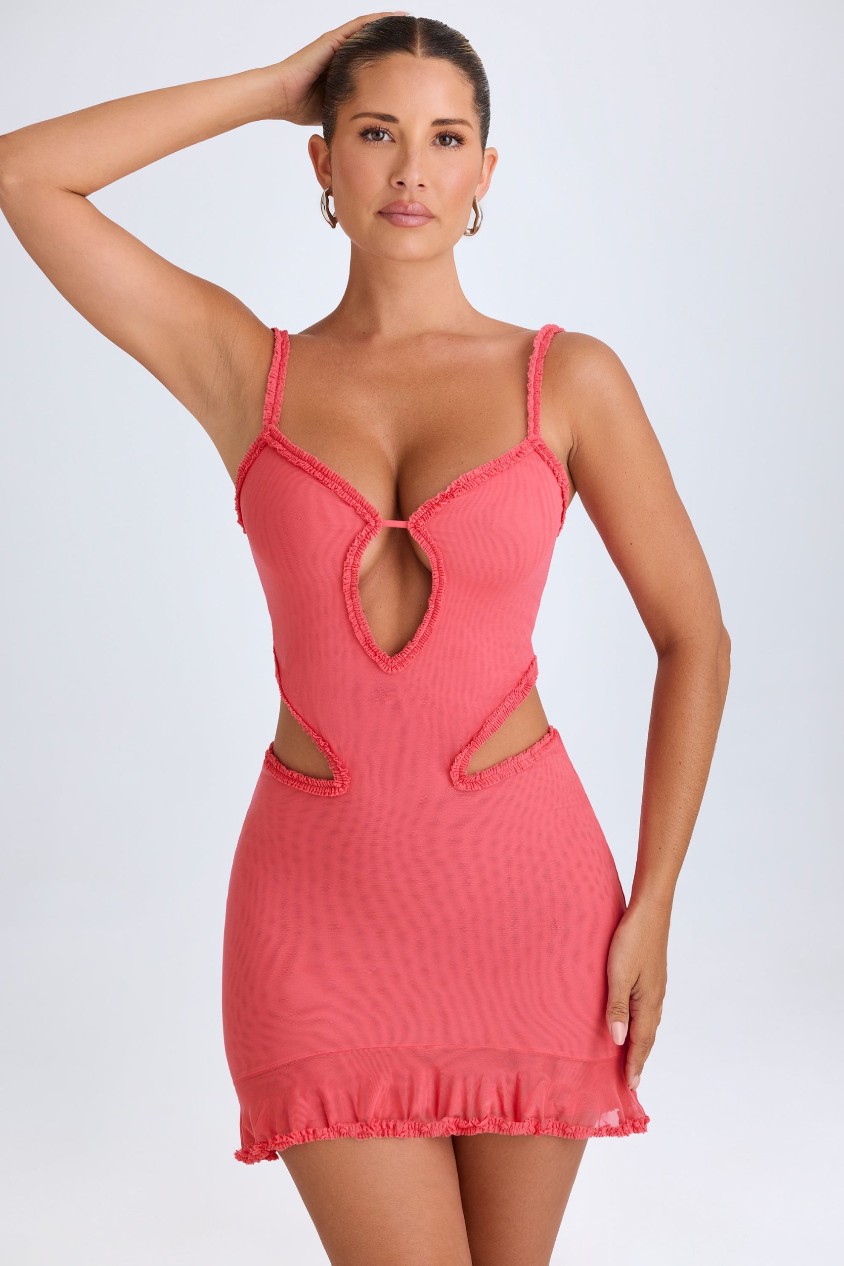 Ruffle-Appliqué Cut-Out Mini Dress in Coral