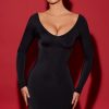 All eyes on you. A versatile and minimalist silhouette ready for you to put your spin on, the Annabelle mini dress is crafted from premium, high-shine stretch jersey to a figure-hugging bodycon silhouette. It’s framed with long fitted sleeves and a low scoop neckline that’s mirrored at the back.