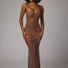 Glittering evenings. A premium design crafted by our team of in-house ateliers, Antonella is an effortlessly glamorous gown cut from sheer, stretch mesh fabric and hand embellished with delicate artisanal crystal hotfix. Complete with a soft scoop neckline and delicate shoulder straps.