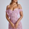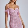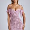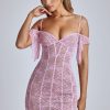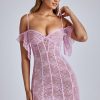 Sweet and sexy, our Eleonora mini dress is everything you need for the season of love. Fitted to the body with a thigh-skimming a-line skirt, Eleonora is cut from premium stretch lace and features a mesh underlay for elevated coverage. The feminine silhouette also showcases a sultry low back and delicate draping at the shoulders.