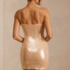 Unforgettable evenings in Orion. A captivating mini dress made from our dual lined power mesh fabric with sequin overlay, the Orion mini dress is ready to weave into your summer stories. Cut to a mini length with an asymmetric halter neckline, raw edge hem and keyhole cut-out at the bust.